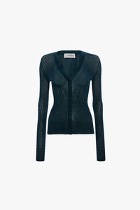 A fine-gauge pointelle knit brings a feminine sensibility to this neat Cardigan presented in attractive Teal. Long sleeves, ribbed cuffs and a low V neckline create a classic silhouette, while tonal button closures add an understated finishing touch. Size & Fit - Fits true to size, take your normal size - The model is 5'10’’/178cm and is wearing a size XS Product Details - Fine gauge pointelle knit - Long sleeves with rib cuffs - Low v-neck - Tonal buttons - 85% Cotton 15% Nylon - Made in China