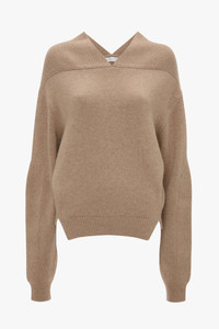 The relaxed fit of the V-Neck Yoke Detail Jumper imbues it with a boyish undertone that feels fresh and modern. Side split hems add a flattering design detail, while ribbed knit patches on each sleeve bring rustic charm. Finished with a branded embroidered tape at the back of the neck and presented in versatile Sand, it is a failsafe wardrobe staple. Styled with the High Neck Top, Button Detail Midi Skirt & Sloan Mule Size & Fit - The model height is 5'11"/180cm and is wearing a size S - For a more fitted look, take one size down Product Details - V-neck yoke detail - Side split hem - Ribbed knit sleeve patches - Branded embroidery tape at back neck - 70% Merino Wool 30% Cashmere - Dry clean only - Made in Turkey