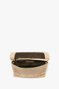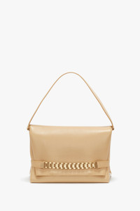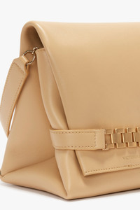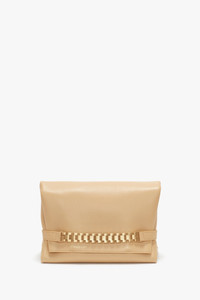 Reimagined in a fresh shade of Sesame for the new season, the Chain Pouch is a favourite of Victoria’s for its versatility and practicality. A removable strap allows the bag to be worn as a Pouch or crossbody, and internal features include a divider compartment with zip closure and tactile suede lining. The Chain Pouch comes with an embossed VB logo and serial number and is embellished with the signature gold chain detail inspired by one of Victoria’s vintage watch straps. Styled with the Cami Fit And Flare Midi and Flat Lace Up Mules Product Details - Soft Lambskin Leather - Signature watch chain detailing - Middle zip compartment, complete with suede lining - Height: 19cm, Width: 28cm, Depth: 13cm - Strap drop: 19cm - On Lambskin Leathers, regularly apply a very small amount of nourishing cream and buff gently using a cloth. Colourless cream should help avoid staining - 100% Lamb Nappa Leather - Made in Italy