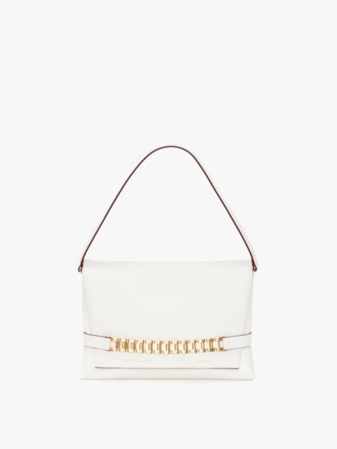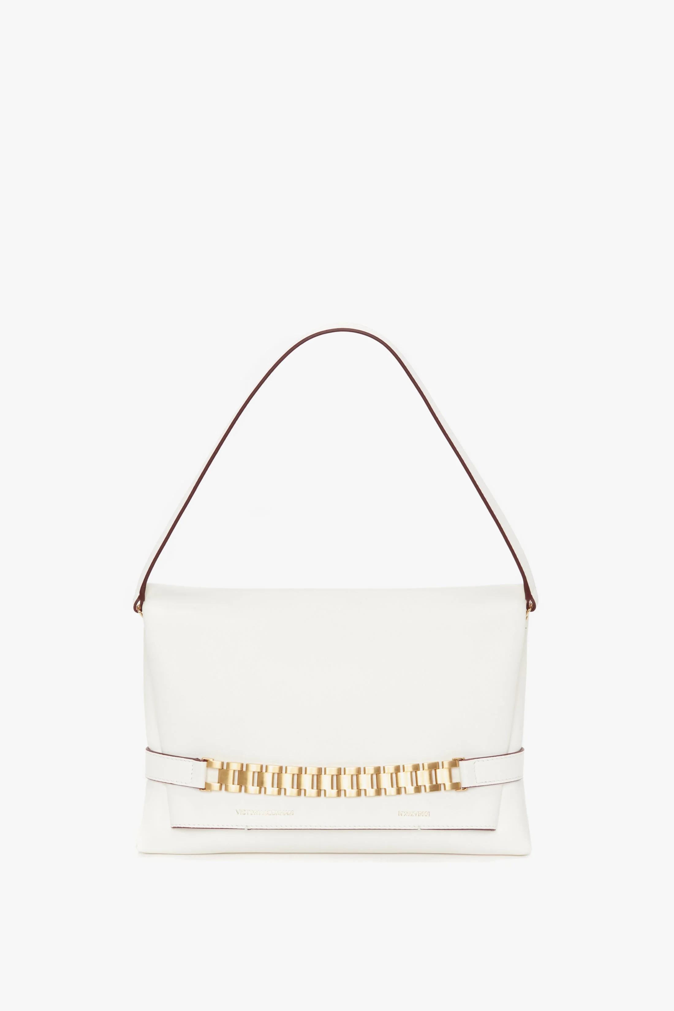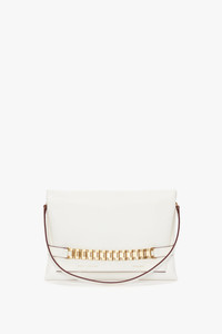 Tactile Nappa leather gives this Chain Pouch a buttersoft quality. Designed in white for an instant seasonal update, features include a middle zip compartment, detachable strap for styling versatility to be worn as either a pochette or a shoulder bag, and exterior gold-tone chain detail. Styled with the Fitted T-Shirt Dress and Pointy Toe Stiletto Sandal Size & Fit - Height 20cm x Width 28cm x Depth 12cm Product Details - Soft leather fabrication - 100% leather - 100% Brass - Detachable strap - Middle zip compartment - Handle drop 17cm - Care: Avoid contact with perfumes and solvents - Wipe with a soft dry cloth - Store in the provided, protective dust bag