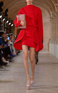 The Londoner continues to build on her empowering uniform with wearability, femininity, and sophisticated polish in equal measure. Find trademark ‘70s-edged tailoring, prints, and new finishes alongside streamlined designs with seductive touches. This mini skirt has a fitted silhouette detailed with two avant-garde circle panels adorning the hips. Complete the look with the matching sweater from the runway. PRODUCT DETAILS - Featured on the FW '23 runway - Slip on - Composition: 33% wool, 27% cotton, 27% viscose, 7% spandex, 6% polyester - Dry clean - Imported