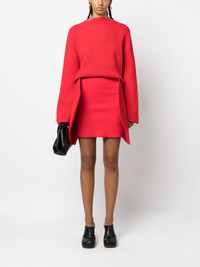 circular 3D-detailing ribbed miniskirt Highlights - Poppy red - Stretch-design - Ribbed knit - 3d detailing - Circular design - High-waisted - Straight hem - Thigh-length Imported Composition Wool 33%, Viscose 27%, Cotton 27%, Elastane 7%, Polyester 6% SIZE & FIT Model measurements Height 5 ft 10 in(1.77 m) Bust/Chest 30.7 in(78 cm) Hips 35.4 in(90 cm) Waist 24.4 in(62 cm) FittingInformation This mini-length skirt is intended to be worn high on the waist Made with a midweight knit, this piece offers some stretch This piece fits true to size – take your usual size