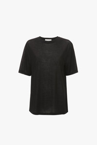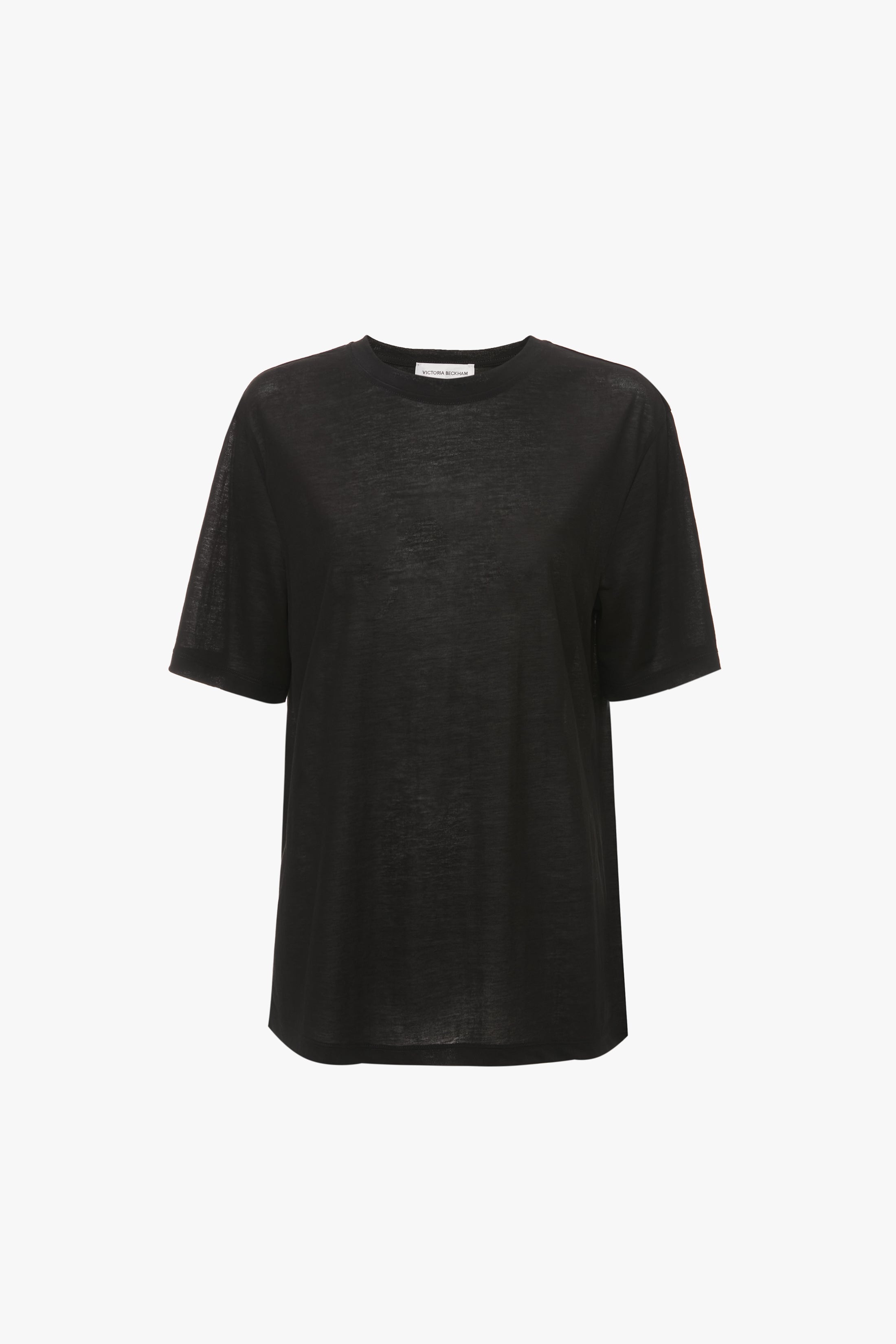 Luxury T-shirts are a house signature and the Classic Cotton Crepe T-Shirt In Black has a contemporary boxy fit perfect for laid-back summer styling. Traditional features include a round neckline and short sleeves and an embroidered Victoria Beckham detail at the back neckline completes the look. Size & Fit - Boxy fit - Fits true to size, take your regular size - The model height is 5'10''/179cm and is wearing a size small Product Details - Classic round neckline - Short sleeves - Embroidered VB detail at back neckline - 70% Cotton 30% Polyamide - Turn inside out and wash at 30C - Made In Portugal