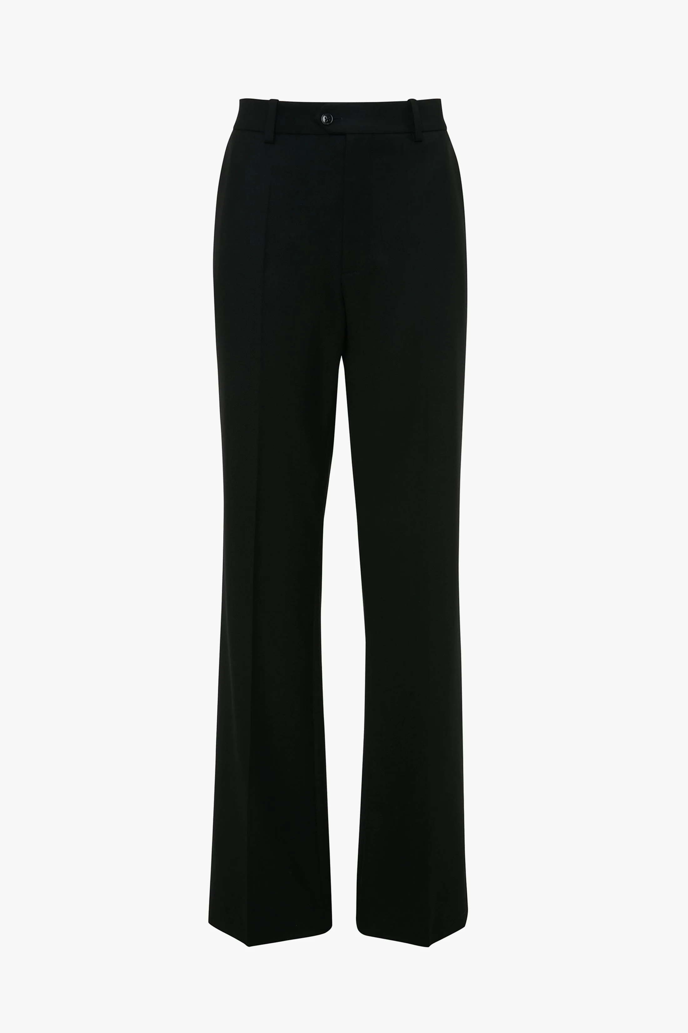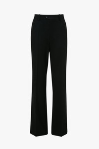 Discover understated elegance with these meticulously tailored black trousers. Designed with a high-waist fit and a crisp front crease, they offer a refined silhouette that effortlessly elongates the legs. The smooth, luxurious fabric drapes beautifully, adding an element of sophistication to any look. Perfect for both professional settings and evening affairs, these trousers are a versatile wardrobe staple that embodies timeless style and elegance. Size & Fit - Wide leg silhouette - 4cm hem for length alteration - Fits true to size, take your regular size - The model is 178cm and is wearing a size 6 Product Details - Sharp front crease - 55% Polyester 45% Wool - Made in Portugal