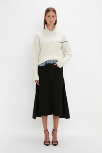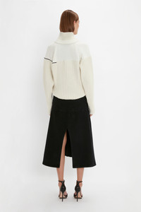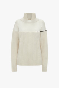 A textured, tactile knit, this Collar Detail Jumper in subdued Natural embodies casual sophistication. The crew neckline with inner collar looks unexpected and modern, while a contrasting chain stitch detail on the upper body elevates the look further. Styled with the Patched Denim Skirt and Pointy Toe Stiletto Product Details - Lambswool cable - Long sleeves - Raglan armhole - Contrast stitch on the upper body - Crew neckline with inner collar - Heavier weight, chunky knit - Oversized fit - Fits true to size. For a more fitted silhouette, we advise taking a size down - The model height is 180cm and is wearing a size small - 100% Lambswool - Specialised Dry Clean Only - Made in UK