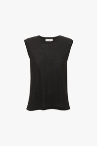 Ideal for lightweight layering, the Muscle Tank has a modern boxy fit for a relaxed silhouette. Sleeveless with a classic round neck, it is presented in Black for easy styling. Finished with a Victoria Beckham embroidered detail at the back of the neckline, it is an elevated summer essential. Size & Fit - Boxy silhouette - Fits true to size, take your regular size - The model height is 5'10''/179cm and is wearing a size extra small Product Details - Classic round neckline - Sleeveless - Embroidered VB detail at back neckline - 70% Cotton 30% Polyamide - Turn inside out and wash at 30C - Made In Portugal