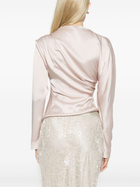 crepe satin blouse Highlights - Light pink - Satin weave - Crepe texture - Shoulder zip fastening - Concealed side zip fastening - Boat neck - Pleat detailing - Rolled trim - Long sleeves - Asymmetric design - Rolled hem Made in United Kingdom Composition Lining: Polyurethane 100% Outer: Acetate 71%, Viscose 29% SIZE & FIT Model measurements Height 5 ft 9 in(1.76 m) Bust/Chest 34.25 in(87 cm) Hips 35.82 in(91 cm) Waist 23.62 in(60 cm) FittingInformation Designed for a slim fit that sits just away from the body offering a close yet comfortable fit Made from a midweight non-stretch fabric Washing instructions Dry Clean Only