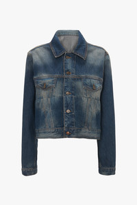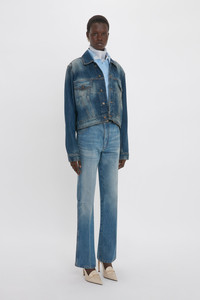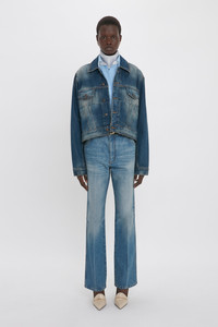 Luxury denim is a signature of the Victoria Beckham brand and a utilitarian favourite is imbued with the house’s hallmark sophistication in the Cropped Denim Jacket. Crafted in 100% cotton and presented in a retro-inspired vintage wash, it has a pleat detail and figure-flattering cut that celebrates the feminine silhouette. Tobacco topstitching and antique copper branded denim shank buttons at the front closure, cuffs, chest pockets and waistband tabs reflect the brand’s uncompromising attention to detail. Styled with the Relaxed Flared Jean, Cropped Long Sleeve Shirt, Silk Scarf, Frame Stud Earrings and the Victoria Clutch Bag Product Details - Vintage wash - Antique copper branded denim shank buttons at front closure, cuffs, chest pockets and waistband tabs - Pleat detail on front - Tobacco topstitching details - Fits true to size, take your regular size - The model height is 176cm and is wearing a size 6 - 100% Cotton - Machine Wash 40C - Made In Italy