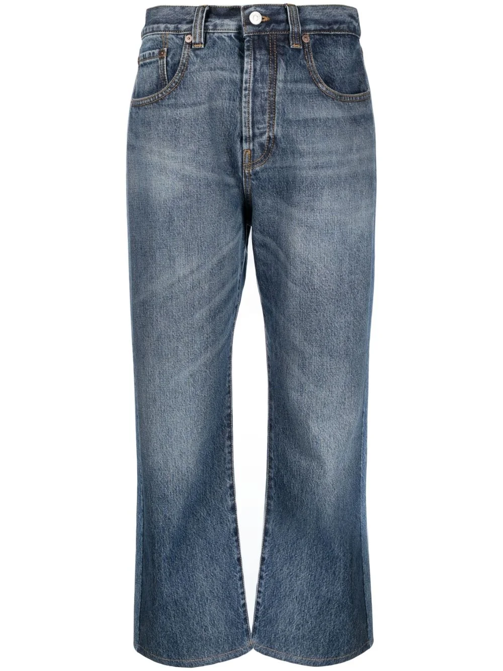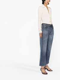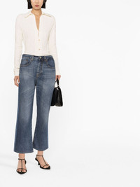 cropped flared jeans Washed to a light indigo hue, these jeans from Victoria Beckham are a modern update on nostalgic ‘70s styles. They’re cut to a cropped, flared leg. Made in Italy Composition Lining: Polyester 65%, Cotton 35% Outer: Brass 100%, Leather 100%, Cotton 100% Washing instructions Machine Wash