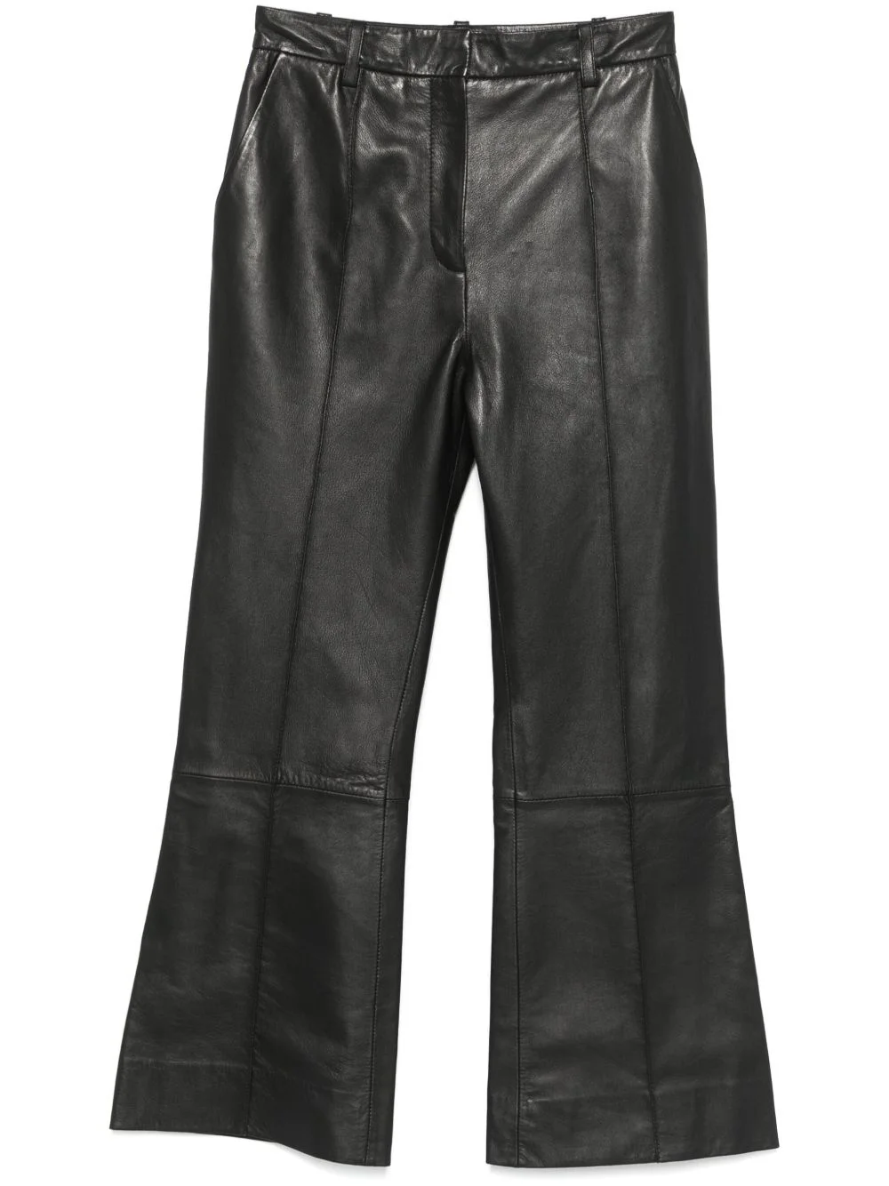 Kick trousers Highlights - Black - Concealed front fastening - Belt loops - Side slit pocket - Flared design Imported Composition Lining: Cotton 100%, Viscose 100% Outer: Calf Leather 100% SIZE & FIT Model measurements Height 5 ft 9 in(1.75 m) Bust/Chest 34.64 in(88 cm) Hips 36.61 in(93 cm) Waist 26.37 in(67 cm) FittingInformation Designed with a flared hem, these trousers allow for a close fit at the waist with a slim fit over the leg and widening towards the hem Soft leather has a supple and smooth construction offering some flexibility