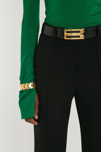 Product Details - Double Wool Crepe - Front leg stitch Detail - Front pockets - Back welt pockets - Belt loops at waistband - Front fly zip closure - Fitted crop length with kick hem - Inseam Leg - 76cm - The model height is 180cm and is wearing a size 6 - 45% Polyester 36% Wool 16% Polyamid 3% Elastane - Specialised Dry Clean Only - Made in Portugal