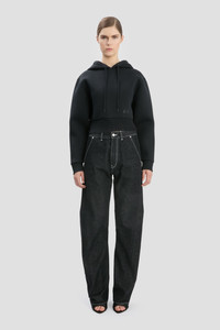 Cropped Structured Hoodie In Black