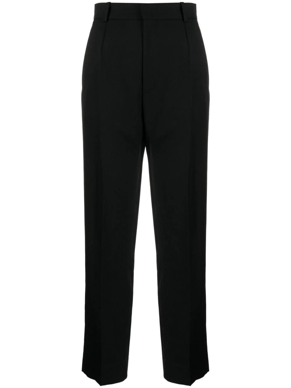 cropped tailored trousers Highlights - Black - Wool blend - Belt loops - Concealed front fastening - Two diagonal pockets to the sides - Two rear welt pockets - Straight leg Imported Composition Body: Polyester 55%, Wool 45% SIZE & FIT Model measurements Height 5 ft 10 in(1.77 m) Bust/Chest 31.49 in(80 cm) Hips 35.43 in(90 cm) Waist 25.19 in(64 cm) FittingInformation Designed for a tapered fit, these trousers allow for a close fit at the waist and a loose unrestricted fit over the leg with a closer fit towards the ankle Cropped in length Made from a midweight non-stretch fabric, this piece offers minimal elasticity when worn This piece fits true to size – take your usual size