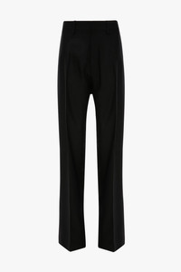 Tailored for a relaxed silhouette, the Curved Leg Trousers are crafted from wool melange with a mid-rise waistline and long-length hemline. A self-fabric waistband elongates the silhouette, while the classic Black colourway has enduring appeal. - Relaxed leg - Mid rise - Long length - Zip fly with double hook & bar closure - Self fabric waistband with internal trim - Belt loops - Button closed pocket - Unlined - 63% Wool 18% Polyester 13% Viscose 6% Wool - Dry clean only - Made in Portugal SIZE & FIT - Fits true to size, take your normal size - The model height is 5’9”/175cm and is wearing a size 6