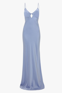 A favourite of Victoria’s, cami dresses are a house signature and the Cut-Out Cami Floor-Length Dress has a classic bias cut and spaghetti straps but is reimagined with a discreet cut-out at the front bodice. A tender shade of Delphinium Blue brings a romantic sensibility to this otherwise sensuous evening gown. Styled with the 202 Clutch Size & Fit - Fits true to size, take your regular size - The model height is 179cm / 5'10 and is wearing a size 6 Product Details - Bias cut cami dress - Cut out detailing at front bodice - Floor length gown - 71% Acetate 29% Viscose - Dry clean only - Made in UK