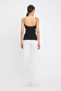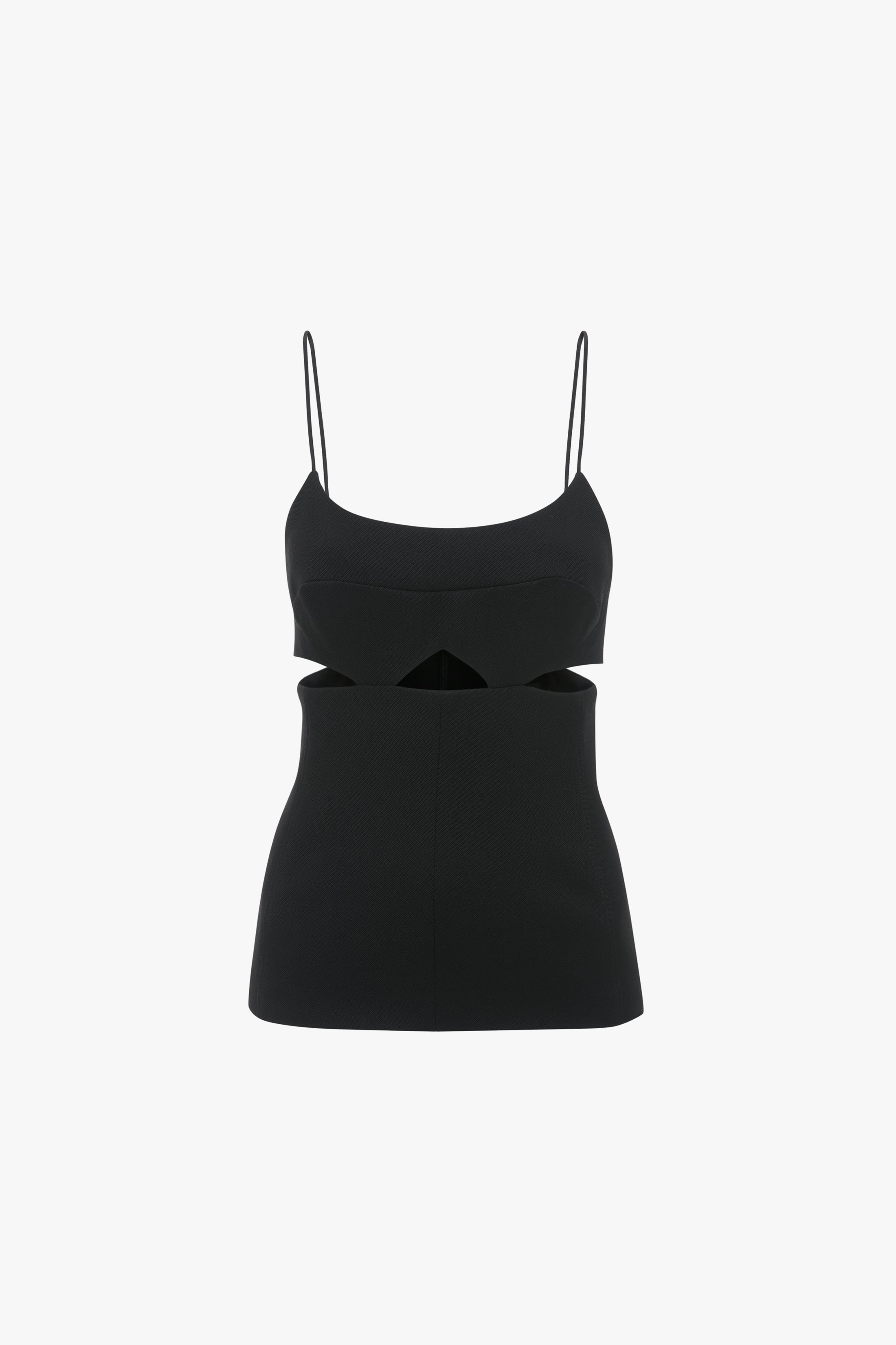 The 1990s cami top is given fresh personality for SS25 with cut-out details at the waistline and visible bra seams on the front bust. With a back and front scoop neckline, the Cut-Out Cami Top also has extendable crepe back satin straps for absolute comfort. Product Details - Grain Depoudre Blend - Bra seaming on front bust panel - Cut-out details at waist - Front and back scoop neckline - Back zip closure with hook and eye - Crepe back satin extendable straps - Fits true to size, take your regular size - The model height is 5'10''/179cm and is wearing a size 6 - 55% Polyester 45% Virgin Wool - Dry clean only - Made In United Kingdom