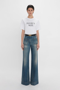 Nodding to the brand's playful side, the 'David's Wife' slogan T-shirt is crafted from soft, organic cotton with a relaxed fit. Dropped shoulder seams and a classic crew neckline give it a casual yet polished feel. Size & Fit - Fits true to size, take your regular size Product Details - Classic Victoria-Tee fit - 100% Organic Cotton - Machine Wash 30C - Made In Portugal