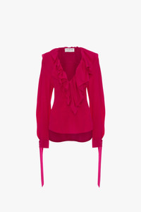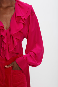 Deep V Ruffled Blouse in Fuschia