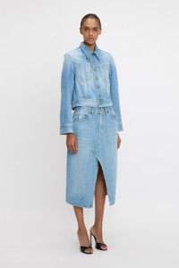 Crafted from a twill non-stretch denim for a true-to-size fit, the Denim Jacket in a Light Blue Wash has a fitted silhouette and cropped body for a feminine twist on the classic utilitarian favourite. A front yoke and dart detail create shape while a pleated detail at the back adds a hint of volume. A branded denim shank button and side tabs complete the look. Size & Fit - Fits true to size, take your regular size - Fitted silhouette - Cropped body length Product Details - Front yoke and dart detail - Non-stretch denim - Back volume and pleat detail - Side tabs - Branded denim shank button - The model height is 5'10''/179cm and is wearing a size S - 100% Cotton - Machine wash 30C, wash inside out - Made in Italy