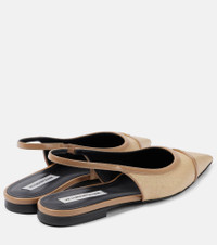 Product Details - Upper: raffia - Lining: leather - Sole: leather insole and sole - Toe shape: pointed toe - Made in Italy - Includes: shoe box, dust bag - Designer color name: Sandstorm - Closure: elasticated strap - Hardware color: gold - Trim: leather - Item number: P01020881 Size & Fit - Fits large to size - we recommend trying one size smaller - Narrow straps - European sizes