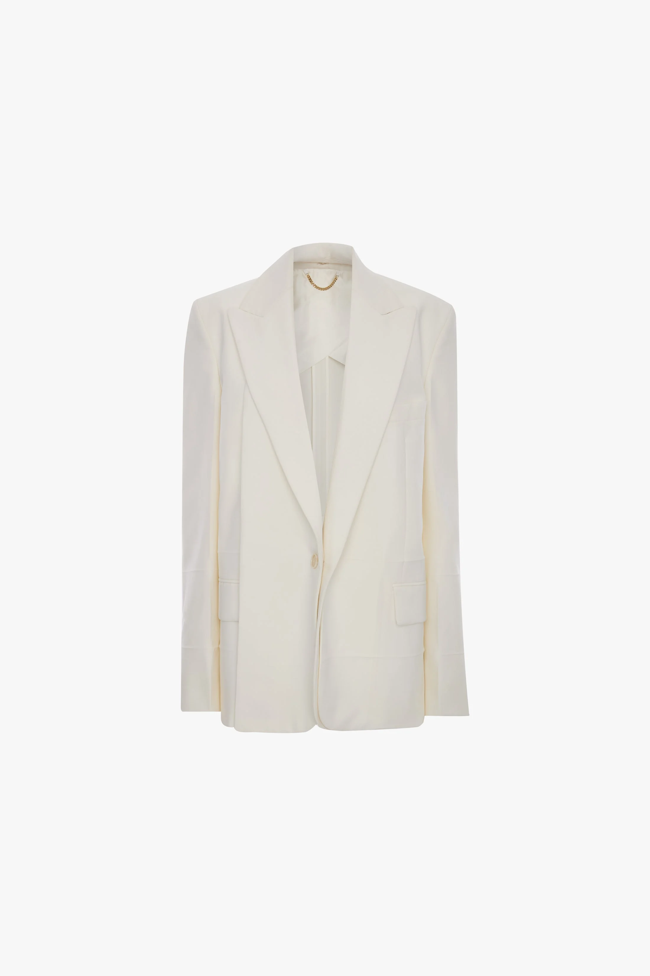 A deconstructed take on traditional tailoring, the Detached Lapel Jacket in Off-White has a single-breasted cut, oversized shoulders and a seat-length hemline. Discreet detailing on the jacket melton adds the house’s signature finesse, while flap pockets bring a traditional finishing touch. - Seat length - Single breasted - Tailored collar and lapel with under melton detail - Long sleeve with non fuctional button detail - Oversized shoulder - Deconstructed detail - Flap pocket - Butterfly lining - 55% Polyester 45% Wool - Dry clean only - Made in Portugal SIZE & FIT - Oversized fit: This style is designed to create a relaxed silhouette - The model height is 5'9½''/177cm and is wearing a size 6