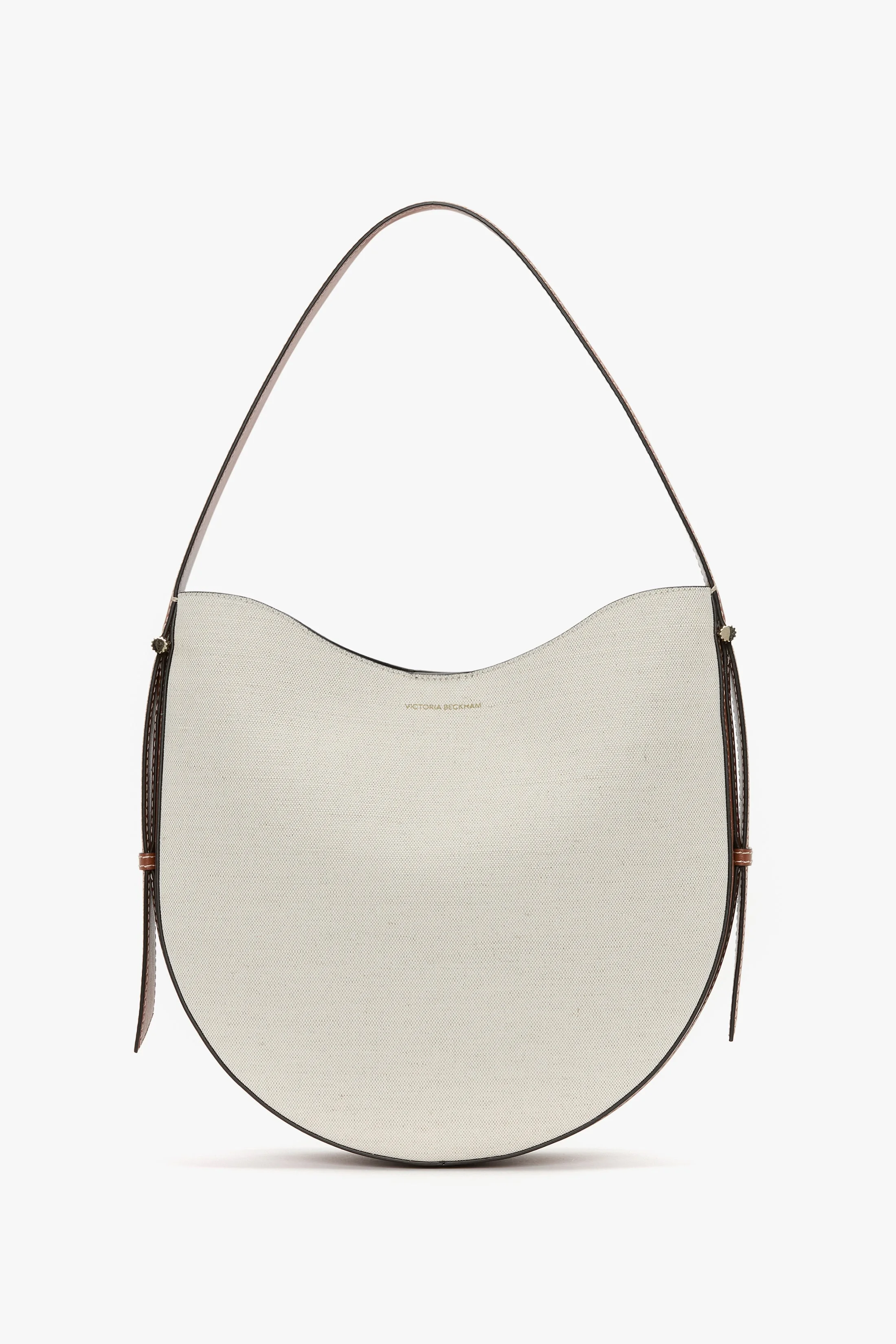 Crafted from canvas for a utilitarian point of difference, the Dia Hobo Bag has a softly structured rounded silhouette, gold cufflink hardware and Tan leather accents. Meticulously made in Italy, it has a magnetic closure and small internal slip pocket for secure storage and elevated detailing, including a Victoria Beckham logo and unique serial code inside the bag. Inspired by the creative energy of New York City, it marries masculine and feminine viewpoints beautifully. Size & Fit - Height: 57.5cm, Width: 34cm, Depth: 9cm, Drop With Strap: 22cm Product Details - Round structured silhouette - Magnetic closure - Small internal slip pocket - Cufflink hardware details - Features our signature gold branding with VB logo and a unique code inside of the bag - Canvas - 100% Leather - On calf leathers, regularly apply a small amount of nourishing cream and buff gently using a cloth - Made in Italy