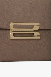 A hero item in the house’s leather goods edit, the Dorian Bag marries masculine textures and feminine details. Presented in a grained leather and delicate shade of Dove Grey, it has a removable and adjustable ‘smart strap’ and snap buttons for versatile styling as a shoulder or crossbody bag. The signature B buckle has been reworked to create a dynamic new locking system, while internally a double compartment and small flat leather pocket allow for secure storage. Finished with the discretely stamped address of Victoria’s London studio (N.202) and a unique serial number, it is a sophisticated proposition for the new season. Size & Fit - Height: 16.5cm, Width: 25cm, Depth: 8.5cm. Product Details - Smart strap allows for multiple wearing options - Internal double compartment - Features our signature gold branding with VB logo and a unique code - Microsuede lining - Textured small grainy calf leather - 100% Calf leather - On calf leathers, regularly apply a small amount of nourishing cream and buff gently using a cloth - Made in Italy