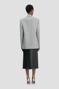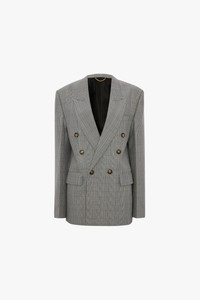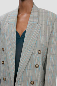 Presented in a Blue-Grey check and meticulously crafted from 100% wool, the Double Breasted Tailored Jacket has an oversized fit and a below-the-hip hemline. Classic front jet pockets with flaps, a welt chest pocket and back double vents complete the look. Size & Fit - The model is 5'10’’/178cm and is wearing a size 6 - Oversized fit: This style is designed to create an relaxed silhouette Product Details - Check jacket - Double-breasted - Front jet pockets - Welt chest pocket - Closed sleeve vent - Internal chest pocket - Double back vents - 100% Wool - Made in Portugal