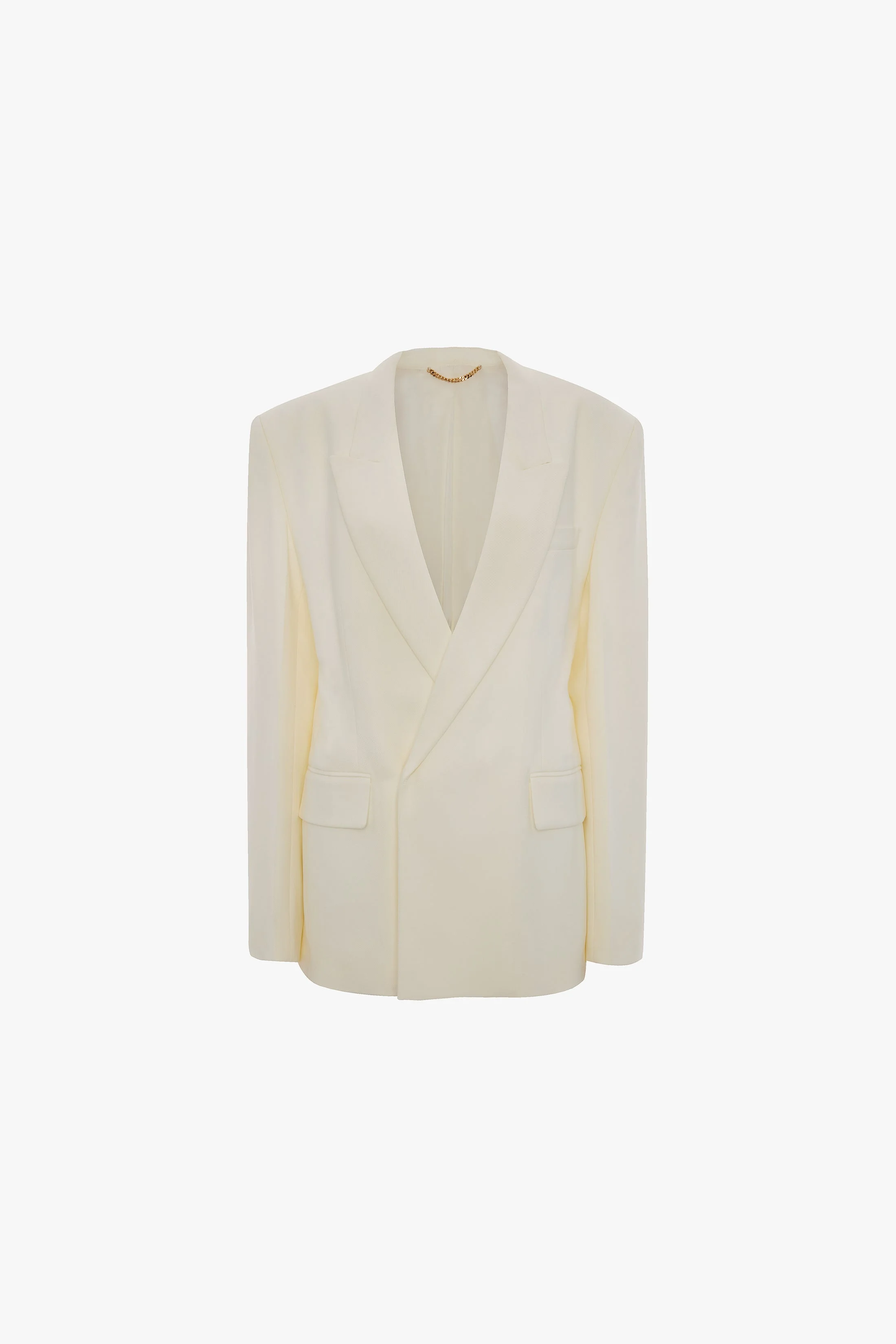 A textured twill fabric re-energises the classic double-breasted tailored jacket. Cut with an oversized fit that finishes below the hip, the Double Breasted Tailored Jacket in Ivory has a modern fluidity. Classic front jet pockets with flaps, a welt chest pocket and back double vents complete the look. Size & Fit - The model is 5'11’’/180cm and is wearing a size 6 Product Details - Fluid textured twill jacket - Double-breasted - Front jet pockets - Welt chest pocket - Hidden button closure - Closed sleeve vent - Internal chest pocket - Double back vents - 100% Viscose - Made in Portugal