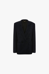 This wool-blend Double Breasted Tailored Jacket in Navy is cut with an oversized fit that finishes below the hip for a modern fluidity. Classic front jet pockets with flaps, a welt chest pocket and back double vents complete the look. Size & Fit - The model is 5'10’’/178cm and is wearing a size 6 Product Details - Wool jacket - Double-breasted - Front jet pockets - Welt chest pocket - Sleeve vent - Internal chest pocket - Double back vents - 50% Wool 50% Polyester - Made in Portugal