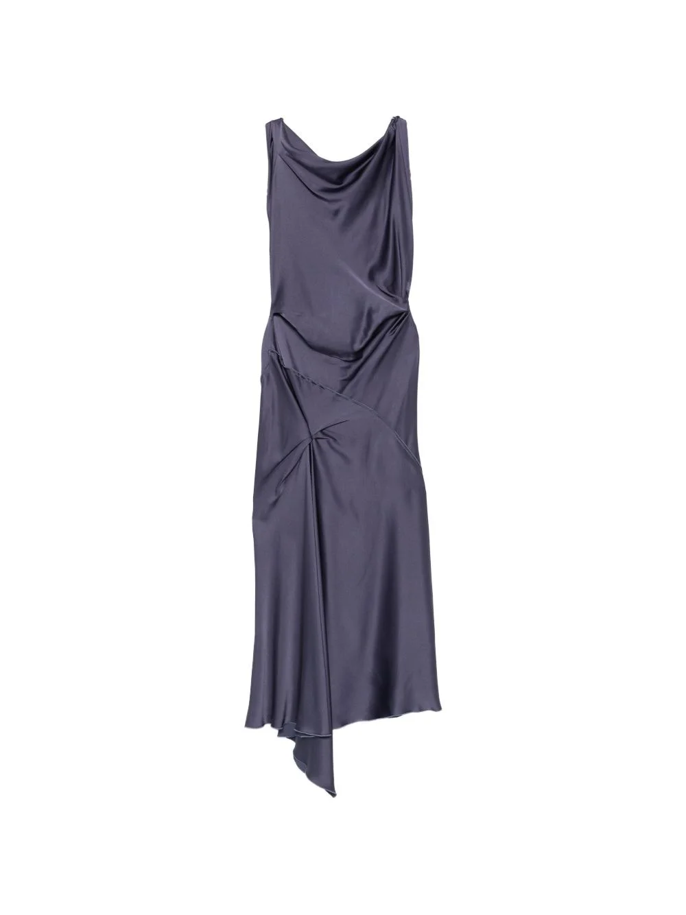 draped asymmetric dress Highlights - Blue - Braided straps - Asymmetric hem - Pleated detailing - Visible seams - Back zip fastening Imported Composition Acetate 71%, Viscose 29% Washing instructions Read Manufacturer Guidelines