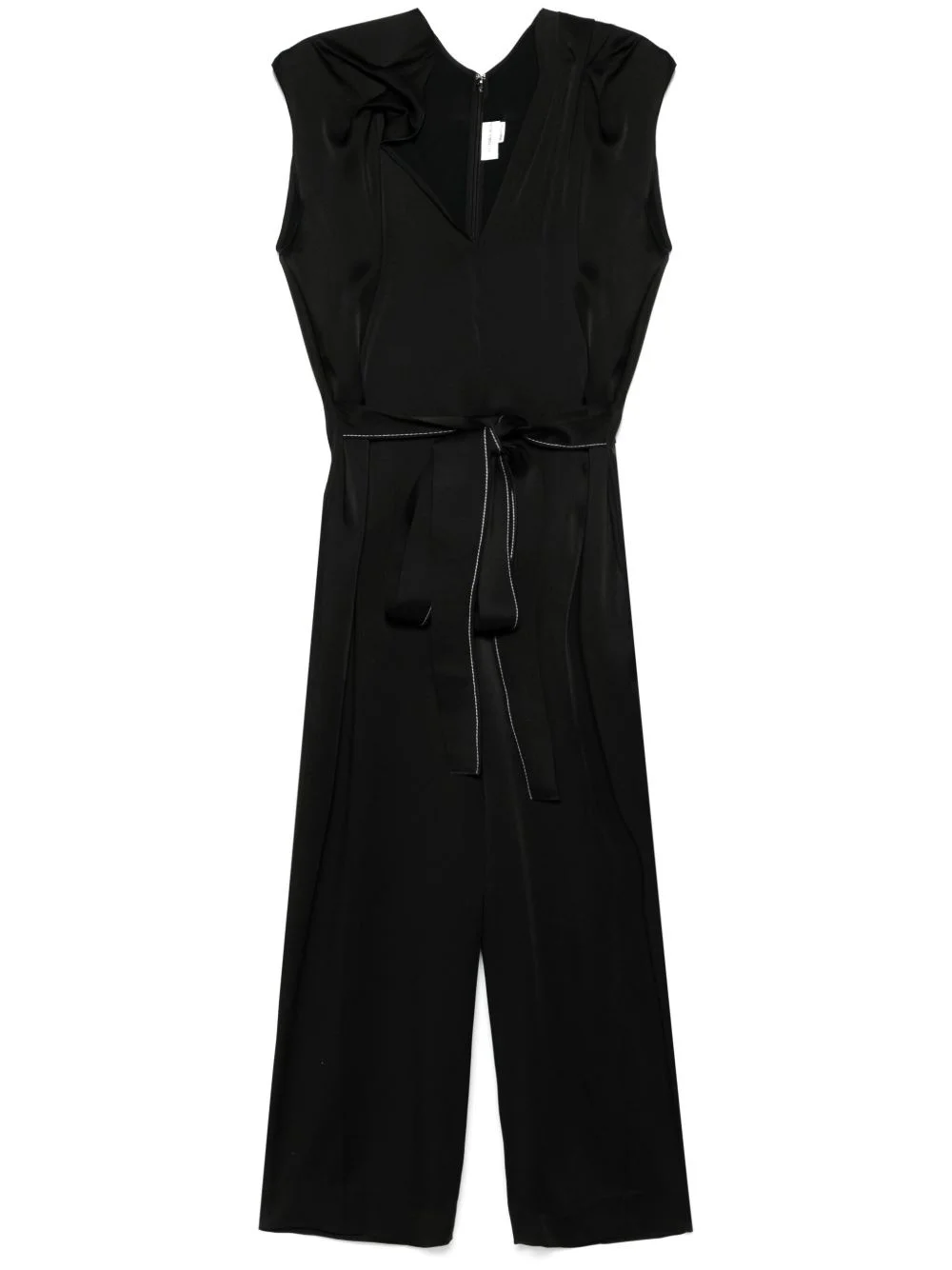 draped jumpsuit Highlights - Black - Concealed rear hook and zip fastening - Asymmetric neck - Tied waist - Two side slit pockets Imported Composition Lining: Polyester 100% Outer: Acetate 71%, Viscose 29% SIZE & FIT Model measurements Height 5 ft 9 in(1.75 m) Bust/Chest 34.64 in(88 cm) Hips 36.61 in(93 cm) Waist 26.37 in(67 cm) FittingInformation Designed for a close fit at the chest and waist, but loose at the hip The belt offers adjustability for fitted preferences Made from a midweight non-stretch fabric