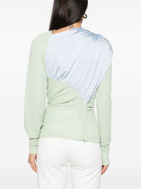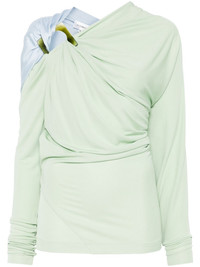 draped long-sleeve top Highlights - Light green/light blue - Stretch-design - Draped detailing - Long sleeves - Two-tone design - Asymmetric neck - Square detailing - Asymmetric hem Imported Composition Brass 100%, Polyester 100%, Viscose 50%, Acetate 47%, Elastane 3% SIZE & FIT Model measurements Height 5 ft 11 in(1.8 m) Bust/Chest 33.07 in(84 cm) Hips 37.4 in(95 cm) Waist 25.19 in(64 cm) FittingInformation Designed for a slim fit that sits just away from the body offering a close yet comfortable fit Made from a midweight non-stretch fabric