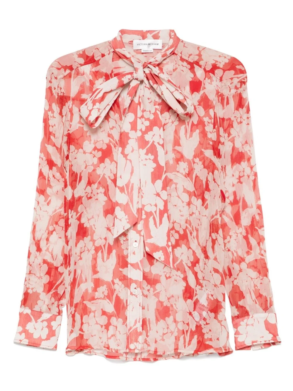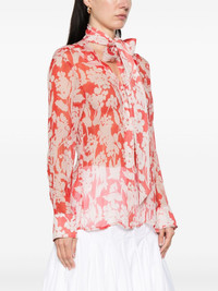 chiffon shirt Highlights - Clay red - Front button fastening - Gathered tie neck - Buttoned cuffs - All-over floral print Imported Composition Silk 100% SIZE & FIT Model measurements Height 5 ft 10 in(1.78 m) Bust/Chest 33.46 in(85 cm) Hips 36.22 in(92 cm) Waist 23.22 in(59 cm) FittingInformation Designed for a relaxed fit, this piece allows for comfort and movement when worn The tie fastening gives an adaptable and personalised fit Made from a lightweight non-stretch fabric