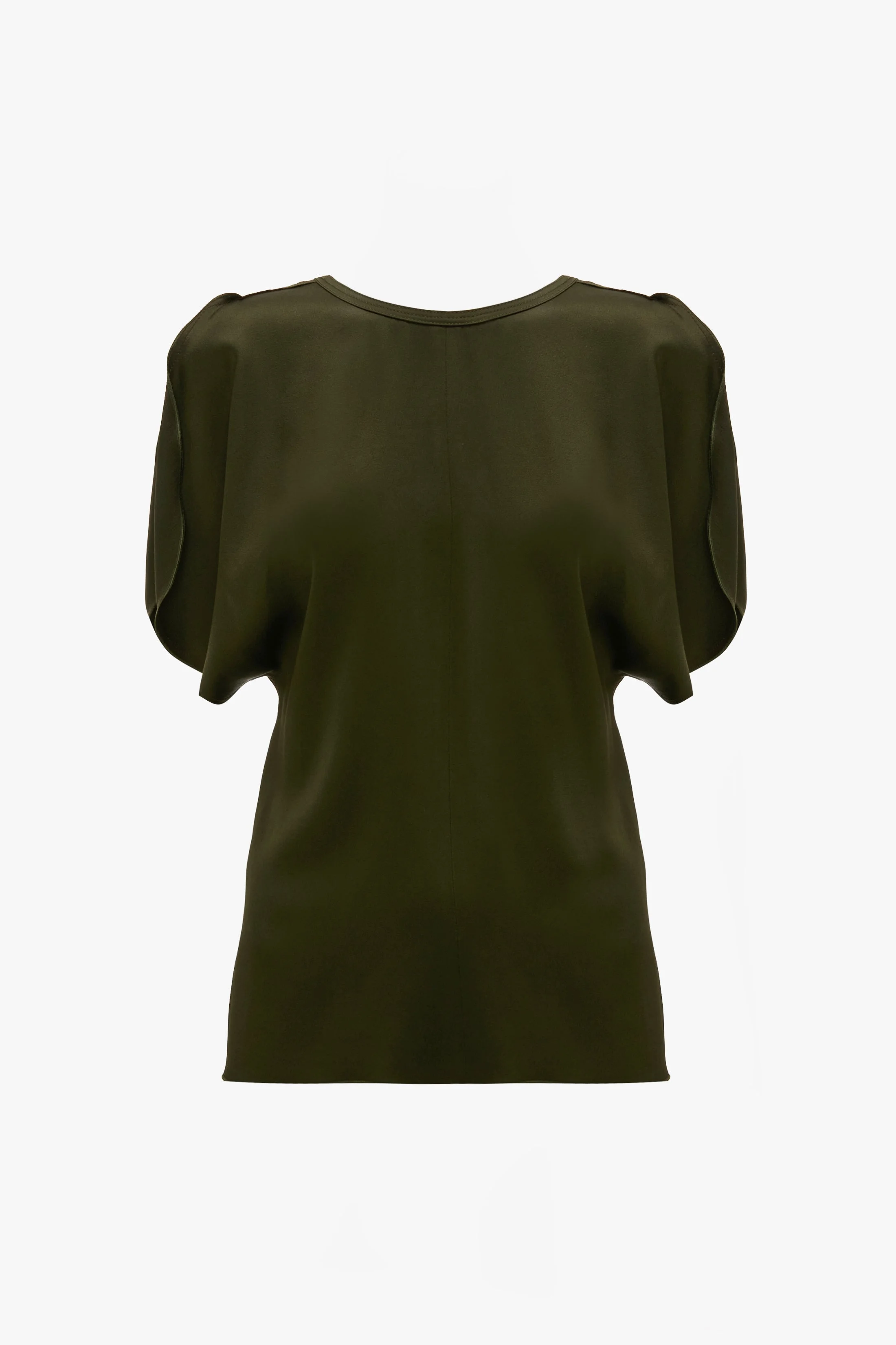 With a demure round neckline, pretty draped sleeves and modest over-the-hip hemline, the Draped Sleeve Top’s deep-V neckline at the back makes a surprisingly bold statement. Crafted from crepe back satin, it has a refined finish enhanced by an exposed baby-overlocking detail at the hem and back waist seam. Size & Fit - Fits true to size, take your regular size - The model height is 5'11’’/180.5cm and is wearing a size 6 Product Details - Top finishes at the hip - Exposed baby-overlocking detail at the hem - Back waist seam - 71% Acetate 29% Viscose - Dry Clean Only - Made in Portugal