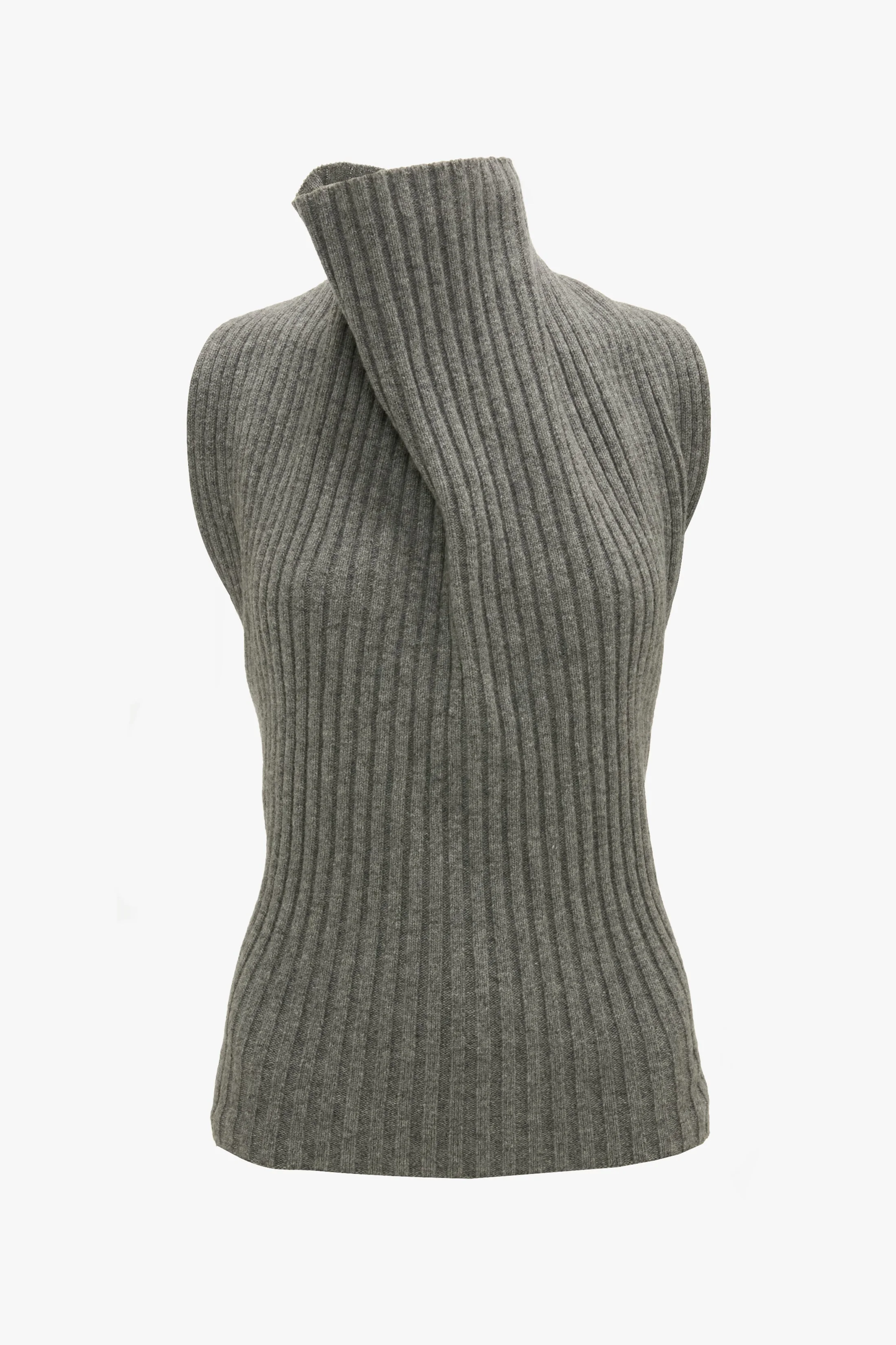 A runway favourite, the Draped Sleeveless Rib Top brings an architectural sensibility to tactile knitwear. Crafted from a lambswool blend and designed with a chunky ribbed stitch, it has a distinctive cowl-neck front with halter neckline and a dramatic open back. Presented in Grey Melange, it is a directional piece for the new season. Size & Fit - The model height is 5’10"/178cm and is wearing a size XS - Fits true to size, take your regular size Product Details - Chunky rib stitch - Draped cowl with halter neckline - Open back - Lambswool yarn - 80% Lambswool 20% Polyamide - Dry Clean Only - Made in Italy