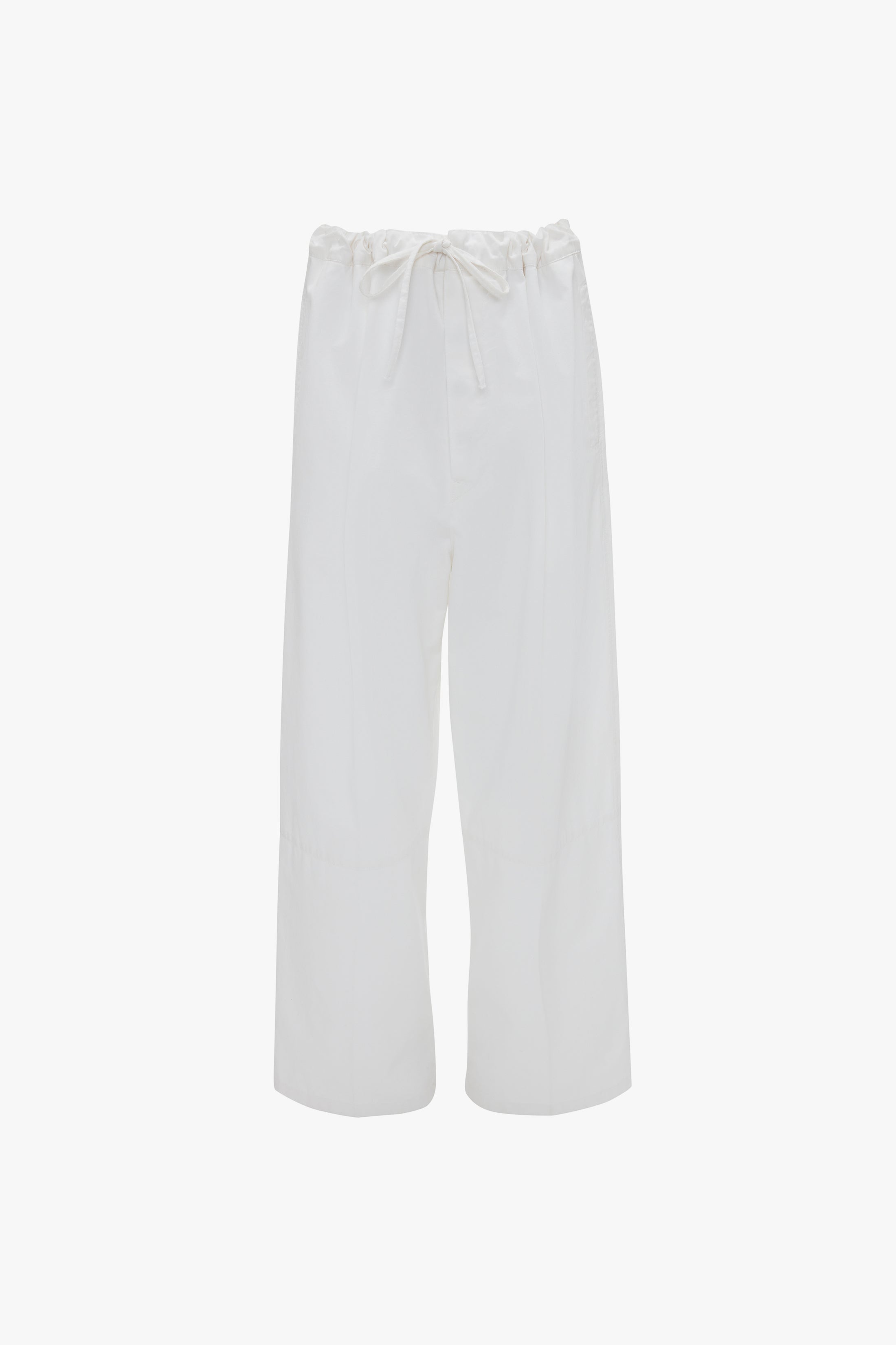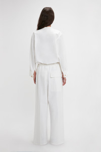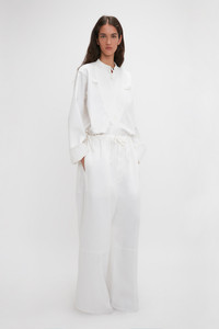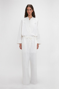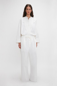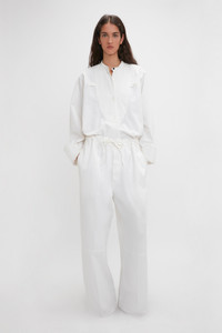 Low-key sophistication is the hallmark of these cotton-canvas Pyjama Trousers. An adjustable drawstring waistband and wide-leg trousers create a fluid silhouette that looks effortlessly cool. Front side pockets and a single utilitarian-style pocket at the back add a masculine sensibility to the aesthetic. Styled with the Bib-Front Tuxedo Shirt, Victoria Clutch and the Destiny Sandal Product Details - Washed white canvas - Wide leg - Adjustable drawstring waistband - Button fastening front - Back flap pocket - Relaxed fit. For a more fitted silhouette, we advise taking a size down - The model height is 183cm and is wearing a size 10 - 100% Cotton - Machine wash 40C, machine wash inside out - Made in Italy