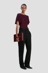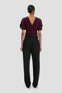 A directional waistband, sitting high at the back and lower at the front, brings a contemporary edge to these grain de poudre trousers. Inspired by traditional menswear tailoring, the Drop-Waist Straight Leg Trouser has distinctive front leg pleats and back waist darts for a feminine inflection and is finished with traditional side seam pockets and belt loops. Presented in classic Black, it reflects the house’s contemporary flair. Size & Fit - The model height is 5'11’’/180cm and is wearing a size 6 - Fits true to size, take your regular size Product Details - Soft Heavy Gabardine straight leg trouser - Waist sits high at the back, drops lower at the front - Side seam pockets - Front leg pleats - Back double jet pocket with button & loop closure - 100% Virgin Wool - Dry Clean Only - Made in Portugal