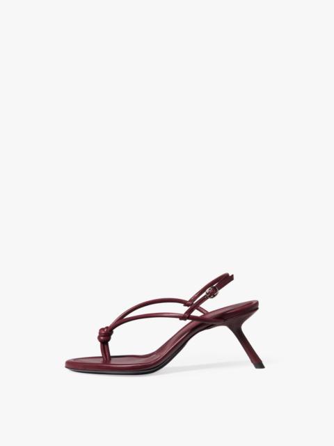 With a heel design that features an unexpected, kicked-out inclination, the Estelle is a new shoe design for VB Footwear this season. Simple tubular straps, an adjustable back and a knotted toe post detail lend a naked look that plays to the season's light, open aesthetic. Bordeaux nappa leather and an almond-shaped toe add a sophisticated finish. Product Details - Nappa Leather Fabrication - Almond-Toe Design Detailing - Heel Height: 70mm - Wipe Clean With a Soft Dry Cloth - Fits true to size, take your regular size - Made in Italy - 100% Lambskin Leather