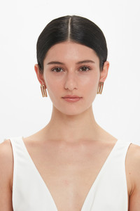 - Gold Plated Brass - Butterfly closing - Engraved Victoria Beckham logo - 100% Brass - Made In Italy These pared-back Dorian Stud Earrings are elevated with the house’s signature Frame detail. Rectangular in shape, they have a butterfly closing for a secure fit and an engraved Victoria Beckham logo. Crafted from gold-plated brass in Italy, they’ll add polish to any outfit. Customer Note: Due to our hygiene policy, this item is non-refundable. SIZE & FIT - Thickness: 1mm to 2.2mm - Height: 3cm - Width: 1.4cm - One size fit