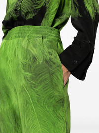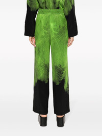 feather-print silk trousers Highlights - Apple green - Black - Silk - Feather print - Elasticated waistband - Straight leg - Slip pockets to the sides Imported Composition Outer: Silk 100% Lining: Polyester 100% SIZE & FIT Model measurements Height 5 ft 10 in(1.77 m) Bust/Chest 31.49 in(80 cm) Hips 34.64 in(88 cm) Waist 23.22 in(59 cm) FittingInformation Designed with a wide-leg cut, these trousers allow for a close fit at the waist and offer a loose and roomy fit over the leg The elasticated waist allows for a comfortable fit Made from a lightweight non-stretch fabric This piece fits true to size – take your usual size Washing instructions Dry Clean Only