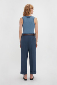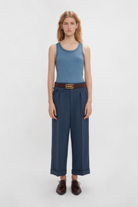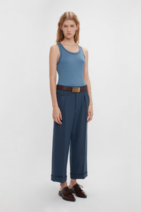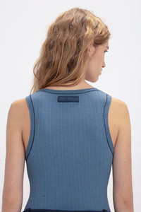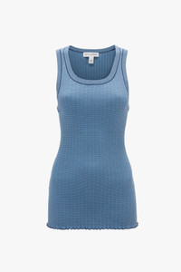 Product Details - Scooped neckline - Sleeveless - Lightweight rib knit - Embroidered VB detail at back neckline - Vertical stitch stripes - Length: 61.5cm - Fits true to size, take your regular size - The model height is 178cm and is wearing a size XS - 62% Cotton 35% Polyamide 3% Elastane - Dry clean only - Made in China