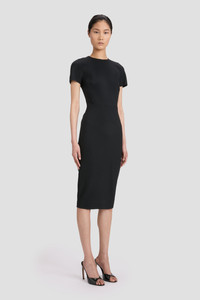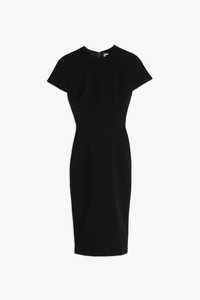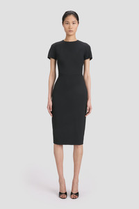 - Double Wool Crepe - Waist seam, with dart detailing on skirt - Exposed rear metal zip - Intended to be fitted, for more relaxed fit take a size up - The model height is 180cm and is wearing a size 6 - 45% Polyester 36% Virgin Wool 16% Polyamide 3% Elastane - Specialised Dry Clean Only - Made in Portugal Inspired by the simplicity of a T-shirt, the Fitted T-Shirt Dress brings a fresh approach to one of the brand's signature fitted shapes. A matte, bonded crepe fabric offers a narrow, flattering fit, while a high neck and midi hemline create an elongated silhouette. SIZE & FIT - Fits true to size, take your regular size - The model height is 180cm and is wearing a size 6