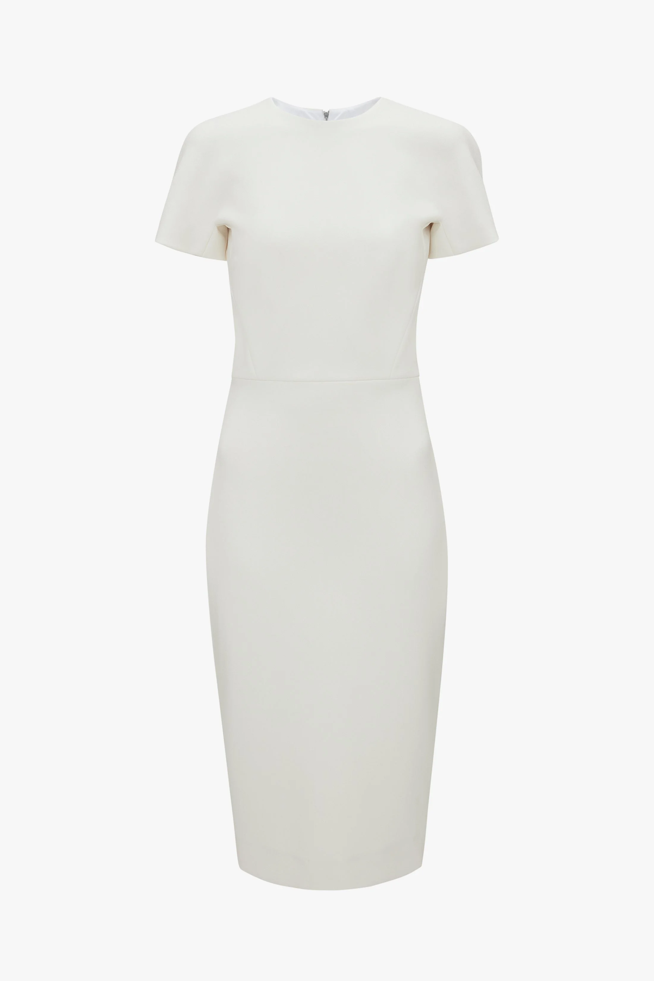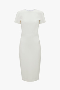 With a modest round neckline, short sleeves and a midi-length hem, this signature Fitted T-shirt Dress has an understated sophistication. Dart details create a defined waistline, while double-ended exposed metal zips to the back add a contemporary design feature. Style simply with the Pointy Toe Stiletto Sandal and the Mini Chain Pouch. Styled with the Gold Chain Earrings, Pointy Toe Stiletto and the Mini Chain Pouch Size & Fit - Intended to be fitted, for more relaxed fit take a size up - The model height is 180cm and is wearing a size 6 Product Details - Double Wool Crepe - Waist seam, complete with dart detailing on skirt - Exposed rear metal zip - Intended to be fitted, for more relaxed fit take a size up - 45% Polyester 36% Virgin Wool 16% Polyamide 3% Elastane - Specialised Dry Clean Only - Made in Portugal