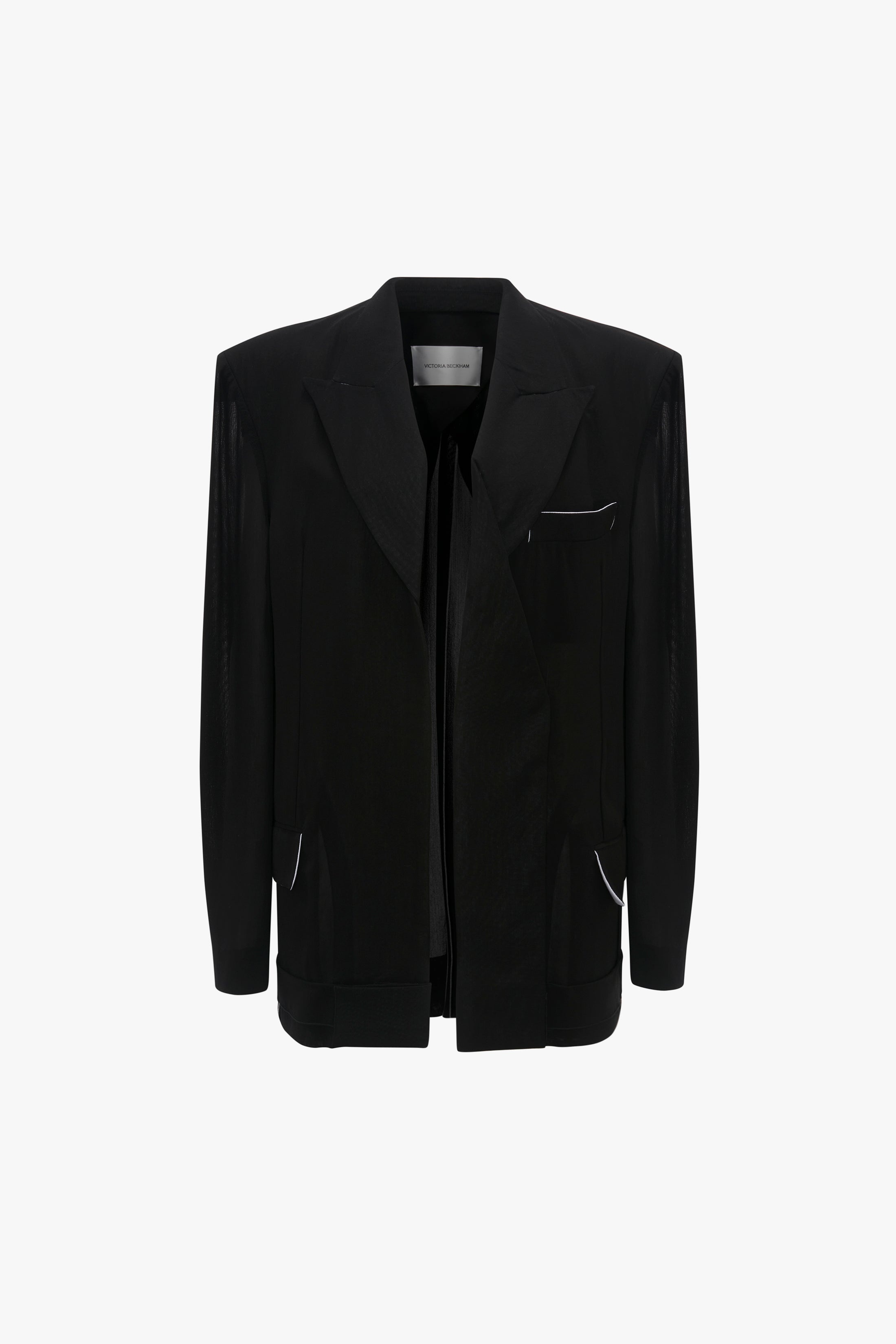 The featherweight wool fabrication of this Fold Detail Tailored Jacket gives it a relaxed nonchalance that feels fresh and modern. Extra-wide lapels, a folded front detail and a contrasting white trim on each pocket add contemporary flair. Butterfly lining, internal exposed seams and a folded detail add elevated finishing touches. Styled with the Waistband Detail Straight Leg Trouser and Flat Lace Up Mules Product Details - Featherweight wool - Back butterfly lining - Inner strap fastening - Relaxed fit - Folded front detail with wide lapel - Internal exposed seams and pockets - Sleeve length: 64cm - Relaxed fit. For a more fitted silhouette, we advise taking a size down - Main: 80% Viscose 20% Virgin Wool Pocketbags: 70% Cotton 30% Polyamide - Pockets: 70% Cotton 30% Polyamide - Dry Clean Only - Made in Lithuania