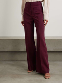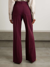 EDITORS'NOTES The palette of Victoria Beckham's Spring '25 collection was informed by the Jean-Michel Basquiat artworks that are hung in her home. Washed in a rich Merlot, these 'Alina' pants are expertly woven with plenty of wool and have wide legs pressed with elongating creases. The patch pockets add a final cool touch. SIZE & FIT Model measurements: - Fits true to size, take your normal size - High-rise, tailored for a straight-leg fit - Mid-weight, non-stretchy fabric - Model is 177cm/ 5'10" and is wearing a size XSmall - Bust: 77cm/ 30.5" - Waist: 62cm/ 24.5" - Hip: 88cm/ 34.5 DETAILS & CARE - Merlot viscose, wool and elastane-blend - Concealed hook and zip fastening at front - 78% viscose, 21% wool, 1% elastane - Dry clean - Designer color: Port