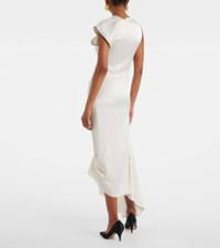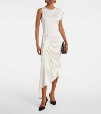 Gathered draped satin midi dress