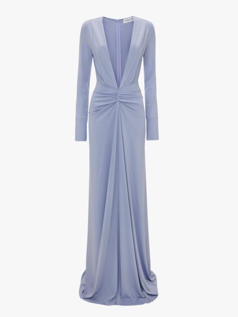A plunging neckline and floor-pooling hemline imbue the Long Sleeve Deep V-Neck Gown with an elongating silhouette. Crafted from stretch jersey for a body-skulpting effect, it has refined long sleeves, a V-shape waist seam and tactile front ruching. Presented in tender Rose, it is expressive but understated and perfectly reflects the house’s contemporary flair. Size & Fit - Fits true to size, take your regular size - The model height is 5'10''/178cm and is wearing a size 6 Product Details - Stretch jersey fabrication - Low plunge v neckline - V shape waist seam with centre front ruching - Full length gown - Centre back invisible zip - 90% Polyester 10% Elastane - Dry clean only - Made in Portugal