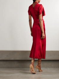 Victoria Beckham's midi dress captures the brand's classically feminine aesthetic. It's made from glossy satin that drapes and flows over your frame. It's gathered through the waist to define the shape. Size & Fit - Fits true to size, take your normal size - Designed to be slightly fitted at the bust and waist, loose at the hip - Mid-weight, non-stretchy fabric - Model is 180cm/ 5'11" and is wearing a UK 8 Model measurements: - Bust: 85cm/ 33” - Waist: 66cm/ 26” - Hip: 92cm/ 36” Details & Care - Red satin - Concealed hook and zip fastening at back - 71% acetate, 29% viscose - Dry clean