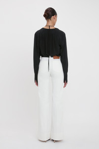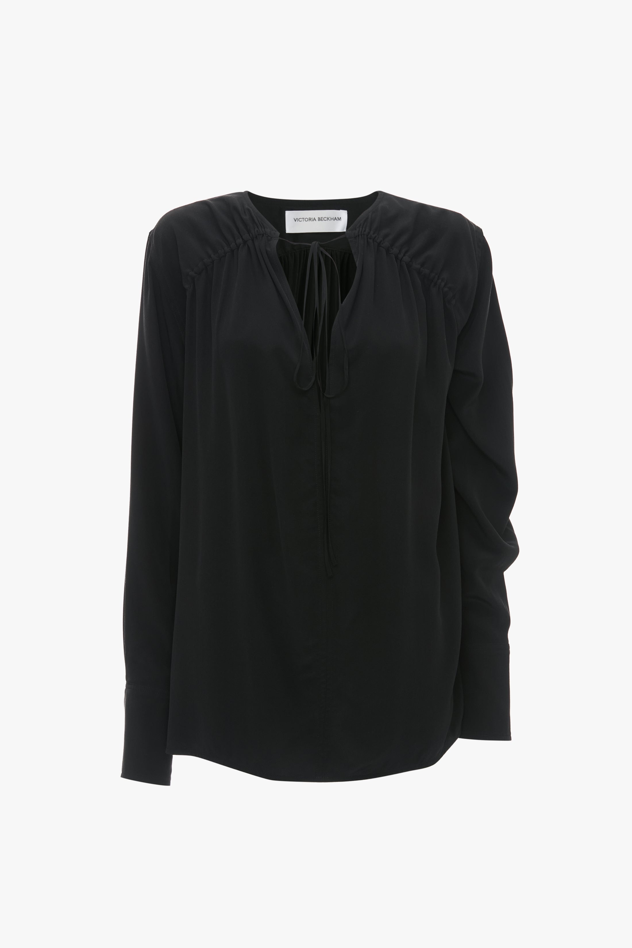 Crafted from silk for a fluid silhouette, the Gather Detail Tie Blouse has a tactile gathered detail at the front bodice and spaghetti-thin ties that fall elegantly to mid-thigh. Presented in classic Black, it is an effortlessly elegant addition to the house's ready-to-wear edit. Product Details - Blouse in fluid silk fabric - Gathered detail on the front with ties to be tied towards back - Comfortable fit - Fits true to size, take your regular size - The model height is 5'10''/178cm and is wearing a size 6 - 100% Silk - Dry clean only - Made In Portugal